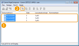 Ved hjælp af Canon PageComposer kan du kombinere flere dokumenter til ét enkelt udskriftsjob og udskrive jobbet med de angivne udskriftsindstillinger. Denne funktion gør dig f.eks. i stand til at kombinere dokumenter, der er lavet i forskellige programmer, og udskrive alle siderne med samme papirformat.