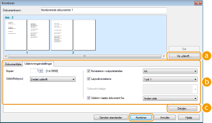 Vælg det udskriftsjob med kombinerede dokumenter, du vil udskrive, på listen [Dokumentnavn], og klik på