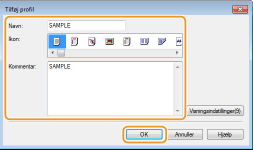Angiv et profilnavn i [Navn], vælg et ikon, og klik derefter på [OK].