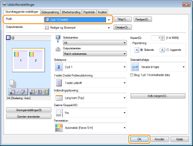 Vælg den profil, der passer til dit behov, og klik på [OK].