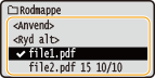 Hvis du vælger <Sortér filer> på skærmen i trin 1, kan du ændre rækkefølgen af de viste filer, når du vælger den fil, der skal udskrives.