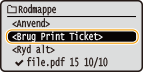 Vælg <Brug Print Ticket>, og tryk på .