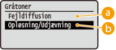 Hvis <Fejldiffusion> er indstillet til <Til>, vises <Opløsning/Udjævning> ikke.