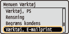 til at vælge <Værktøj, E-mailprint>, og tryk på