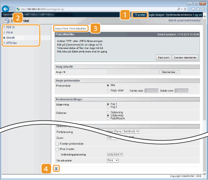 Viser en [Indstillinger/Registrering]-side. Når du har logget ind med administratorstatus, kan du ændre indstillingselementerne og gemme/indlæse de registrerede data.