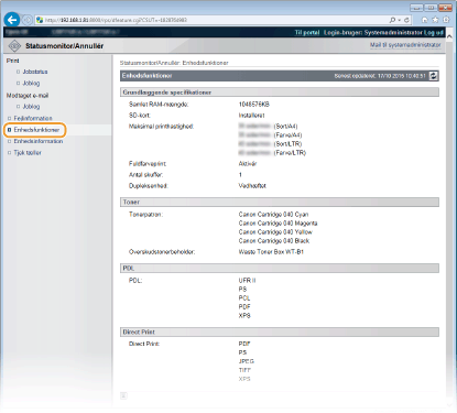 Historikken med op til 200 udskrevne dokumenter, der er lagret i maskinen, vises (kun, hvis SD-kortet er installeret).