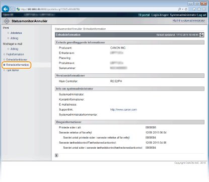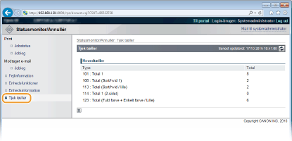 Status for alle udskrivningsjob vises uanset indstillingerne for administration af afdelings-id.
