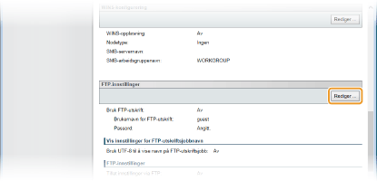 Merk av i avkrysningsboksen for å tillate innstillingsendringer for maskinen via FTP-klient. Fjern merket i boksen når du ikke vil tillate innstillingsendringer.