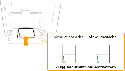 Automatisk 2-sidig utskrift er ikke mulig for postkort. Hvis du vil skrive ut på begge sidene av postkortet, skriver du først ut på den ene siden og deretter på den andre.