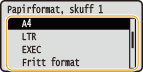 for å velge en av <Papirformat, skuff 1> til <Papirformat, skuff 4>, og trykk på