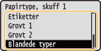 Velg en av <Papirtype, skuff 1> til <Papirtype, skuff 4>, og trykk på