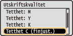 Hvis <Tonersparing> er satt til <På>, kan du ikke bruke denne justeringsfunksjonen. Tonersparing
