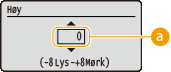 / til å justere tettheten.![]() Justering av tetthetAngi en "+"-verdi for å øke tettheten. Angi en "-"-verdi for å redusere tettheten.