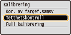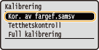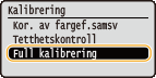 Hvis det er lite toner igjen i kassettene, kan kalibreringen føre til feil fargebalanse. Hvis dette oppstår etter kalibrering, anbefales det at du skifter tonerkassetter som det er lite toner igjen i. Kontrollere mengden gjenværende toner