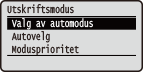 Hvis alle utskriftsmoduser er stilt til <Av>, kjører maskinen i utskriftsmodusen angitt for <Modusprioritet>.