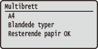 Velges for å vise den gjeldende angitte papirstørrelsen og papirtypen, og det gjenværende papirnivået for hver papirkilde.