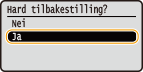 ( ) på betjeningspanelet, vises menyen for tilbakestilling. |