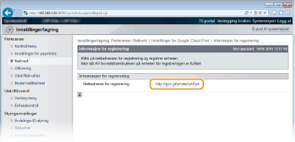 Klikk på koblingen til URL-adressen som vises for [Nettadresse for registrering].