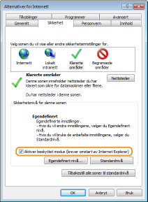 Fjern merket i avkrysningsboksen for [Aktiver beskyttet modus (krever omstart av Internet Explorer)], hvis den er valgt.