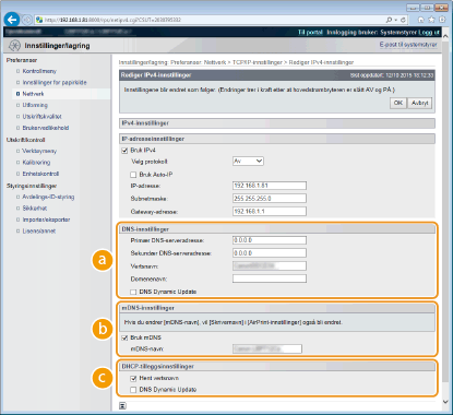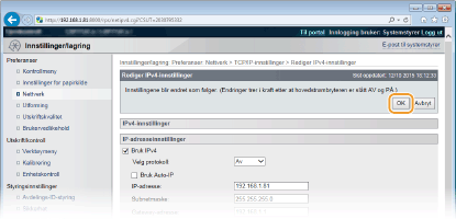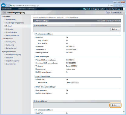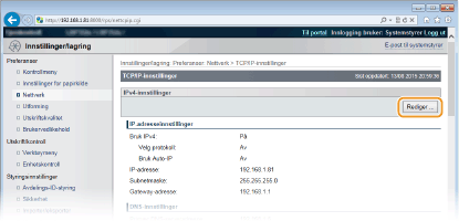Klikk på [Rediger] i [IPv4-innstillinger].