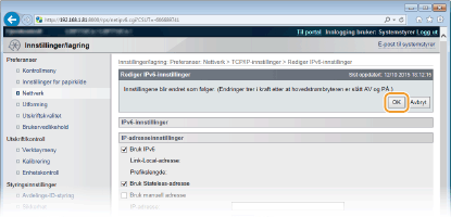 Klikk på [Rediger] i [IPv6-innstillinger].