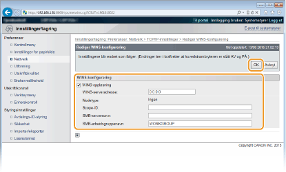 Klikk på [Rediger] i [WINS-konfigurering].