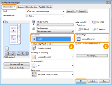 I [Sideoppsett] velger du antall sider som skal skrives ut på ett ark