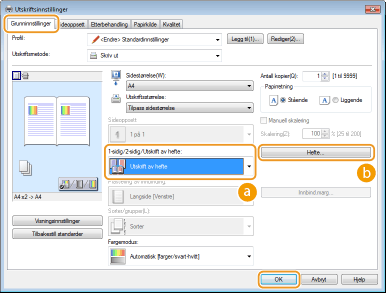 Velg [Utskrift av hefte] i [1-sidig/2-sidig/Utskrift av hefte]