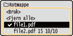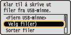 Hvis du velger <Sorter filer> på skjermen i trinn 1, kan du endre rekkefølgen for visning av filer når du velger filen som skal skrives ut.