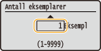 Spesifiser antallet kopier fra 1 til 9999. Bruk de numeriske tastene for å angi et antall og trykk på