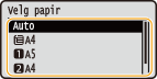 Velg papirkilden med utskriftbar og allerede innlastet papir. Bruk
