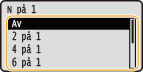 Velg om du vil skrive ut flere sider på ett ark ved å fordele dem kronologisk fra øverst til venstre. For å for eksempel skrive ut fire bilder på ett ark, velger du <4 på 1>. Bruk