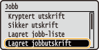 til å velge <Lagret jobbutskrift> og trykk på