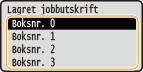 Velg boksnummeret til dokumentet som skal skrives ut, og trykk på