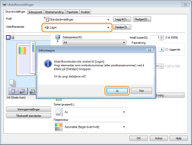 Velg [Lagre] i [Utskriftsmetode], og klikk på [Ja].