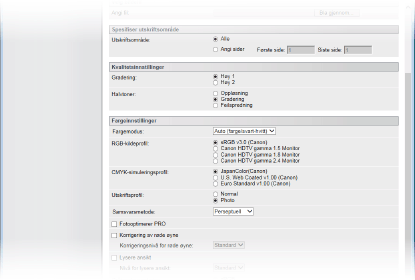 Bruk profilen Euro Standard. Utskriften utføres i farger som er nær europeiske utskriftsstandarder.