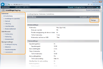 Innstillinger for styring