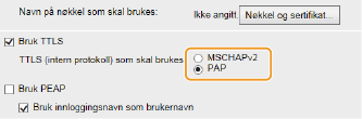 Merk av for [Bruk TTLS] eller [Bruk PEAP].
