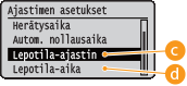 <Herätysajastin> tai <Lepotila-ajastin>