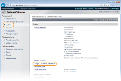 Ota käyttöön laitteen Google Cloud Print -toiminto. Voit myös poistaa käytöstä laitteen Google Cloud Print -toiminnon.