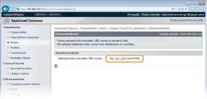 Laitteen rekisteröiminen Google Cloud Print -palveluun