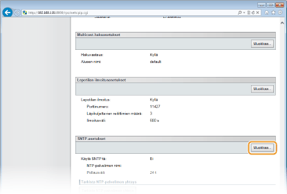 Laitteen SNTP tukee sekä NTP-palvelinta (versio 3) että SNTP-palvelinta (versiot 3 ja 4).