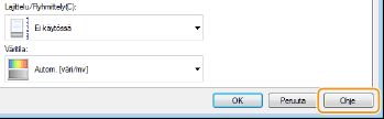 Voit käyttää PCL6-tulostinajuria sekä UFRII LT -tulostinajuria. Käytettävissä olevat tulostusasetukset vaihtelevat tulostinajurin mukaan. Lisätietoja saat valitsemalla tulostinajurinäytöstä [Ohje].
