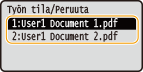 Peruuttaminen etäkäyttöliittymästäVoit peruuttaa tulostuksen etäkäyttöliittymän [Työn tila] -sivulta: Tulostusasiakirjojen nykyisen tilan tarkistaminen