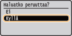 Peruuttaminen sovelluksestaJoissakin sovelluksissa esiin tulee alla näytetyn kaltainen näyttö. Voit peruuttaa tulostuksen valitsemalla [Peruuta].