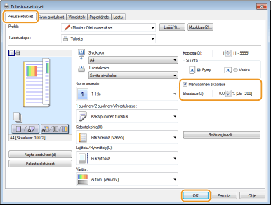 Valitse [Manuaalinen skaalaus] -valintaruutu