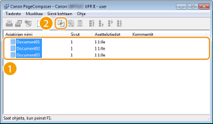 Asiakirjat lisätään Canon PageComposer -ohjelmaan.
