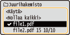 Jos haluat poistaa valinnan, valitse tiedosto, jonka olet valinnut (merkitty merkillä