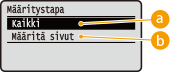 Määritä, tulostetaanko väreissä vai mustavalkoisena. Valitse asetus näppäimillä