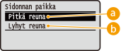 Määritä, nidotaanko 2-puolisten tulosteiden pitkä vai lyhyt reuna nidontatyökalulla, kuten nitojalla. Valitse nidontakohta painamalla